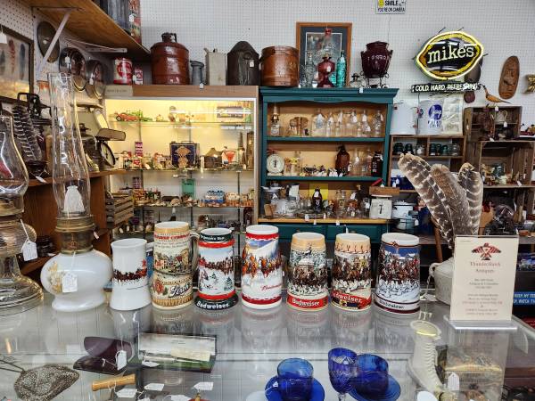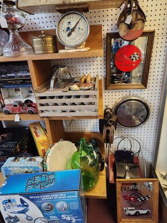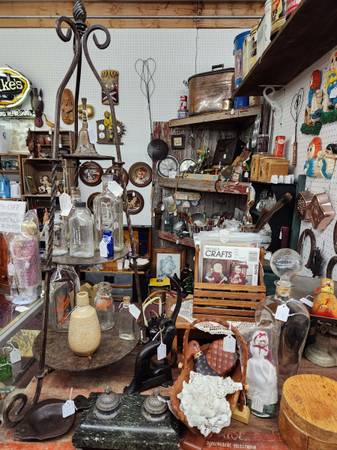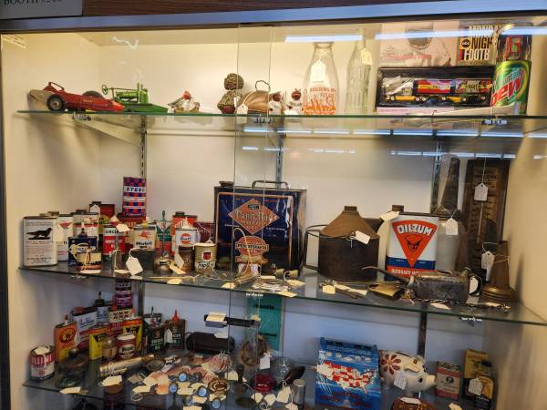We have Four Booths: Our first Two booths look like Antique sporting goods stores with Fishing Lures and Hunting Items Our Third booth is full of Vintage Signs many collectibles to choose from. A Man Cave Paradise All your Guy shopping done in one stop!