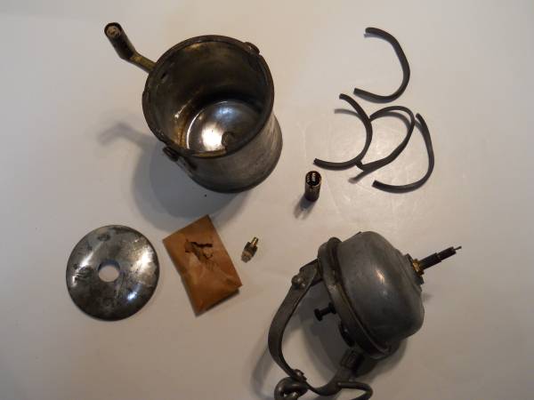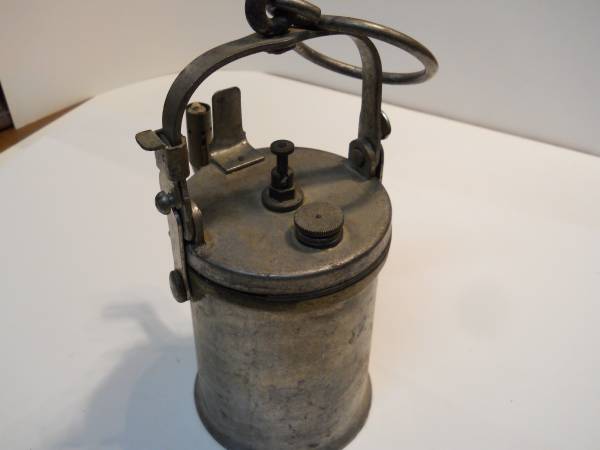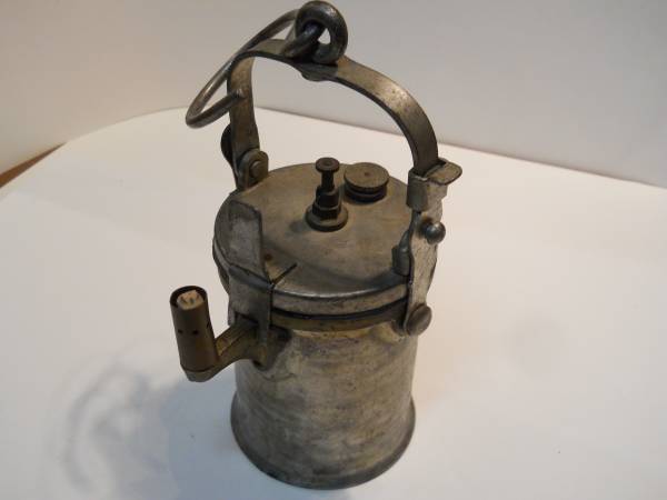 1918 Navy carbide lamp. see pics. rubber gaskets are hard and brittle. It is missing the reflector. The pics show the piece that goes in the bottom of the canister where the reflector belongs. Will consider paypal and if needed shipping will have to be figured later.