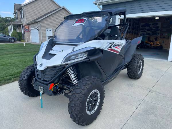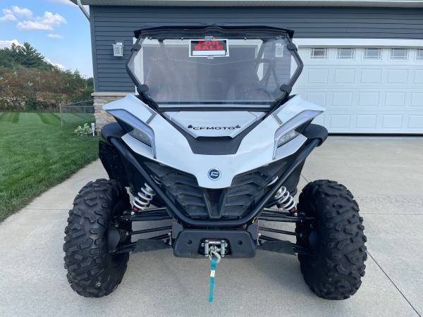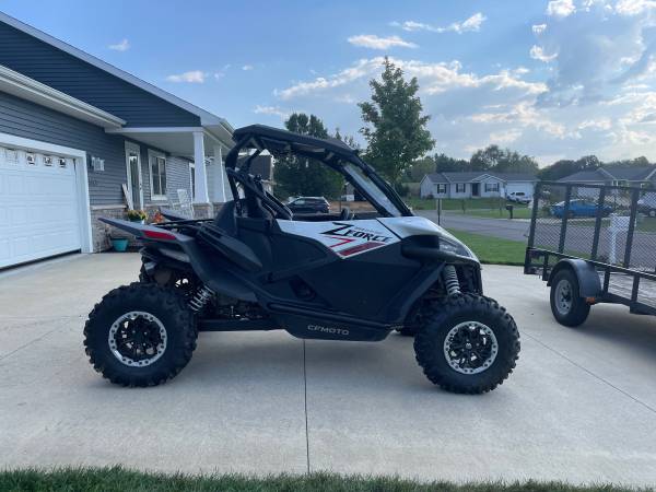 You can pick these up TODAY at our home in Elkhart, Indiana.~ I have this like new (some trail scuffs/brush marks on the door decals) a 2022 CF MOTO Z FORCE 950 HO SPORT UTV/SIDE X SIDE FOR SALE OR POSSIBLY TRADE. It comes with a 2015 trailer, by Reiser, (in great condition). This is a turn-key “COMPLETE” package! The side by side is LIKE-NEW, only 236 miles! Note: *I just took this UTV/TRAILER PACKAGE, as a trade, for my HARLEY* I will sell the package for $12,950.00 cash/best $$ offer OR possibly trade for a newer, late model year, car or truck, in “EXCELLENT” BODY and MECHANICAL condition. *(ABSOLUTELY NO RUST, DAMAGE OR DENTS)* Thanks for your interest.