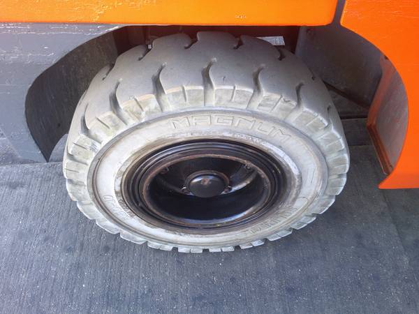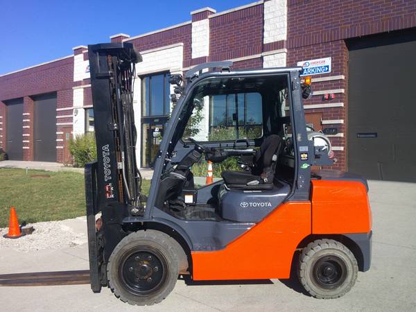 6K LB. Capacity Pneumatic Toyota Forklift, Model # 8FGU30, propane powered, solid pneumatic traction non-marking tires, 2988 hrs., partial cab, triple mast, lifts 16'-6" high, side shifter, fork positioner, 48" forks, lbr., heater, fan, windshield wipers, digital display, fingertip controls, lights, strobe light, back up alarm, premium seat, turn signals, front & rear blue safety spotlights, ideal yard truck, no leaks or issues, ready to work today, we can offer delivery, come take a test drive at the warehouse, asking $15,980., contact is Tim.