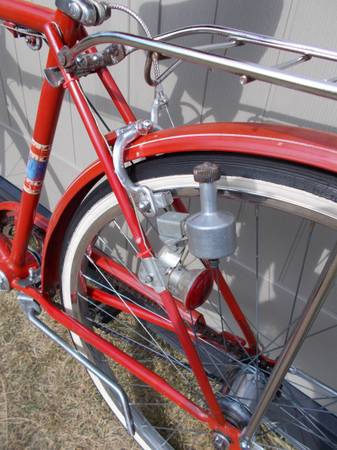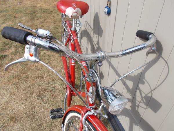 Reconditioned. 20" Frame 26" Tires, All original except saddle and cables. 3-spd. Stermey Archer rear hub, Painted steel fenders, Working generator with head and tail lights. Chrome rear rack. Cruiser handlebars. White wall tires. New brake/shift cables and housings. Saddle, paint, chrome and decals are in good condition. All bearings cleaned and regreased. All parts cleaned and polished. I do not have a smart phone and can't text. Calls or email only please.