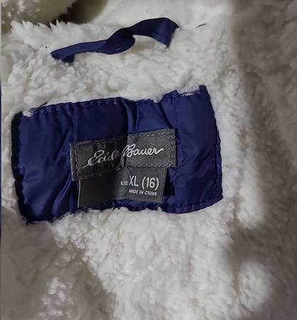 Eddie Bauer Girl's Long Parka Jacket - Down Bubble Coat with Fur Hood for Girls New With TagsColor: PinkSize: XL/16Shell:100% Nylon; Lining: 100 Polyester; Filling: 75% Duck Down, 25% Feathers; Faux Fur: 70% Acrylic, 30% PolyesterMachine WashImportedTHE PERFECT ANSWER TO PLUNGING TEMPERATURES This parka has a water-repellent shell and is fully insulated with 650-fill Premium Down. The extra length, insulated hood, and extended rib-knit cuffs all contribute to weather protection that's more than ready for winter's worstWIND & WATER REPELLENT FOR ALL-ROUND PROTECTION: The water-resistant polyester features our innovative waterproof/breathable technology that causes rain to bead and roll off rather than soak into the fabric. Along with StormRepel DWR finish that sheds moisture, your daughter/son will stay dry and protected even during windy, rainy daysTONS OF FEATURES TO KEEP WARM: Made of top-notch quality materials,kids’ parka is perfect for keeping warm. Features extended microfleece cuffs, an insulated hood with a removable faux fur ruff, faux fur lining, and multiple pockets to keep your hands warm. [100% polyester shell | 650 Power Fill down liner].