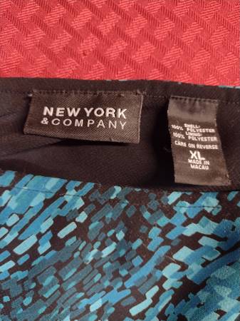 New York & Company Black & Turquoise Print A-line Skirt – Size XL