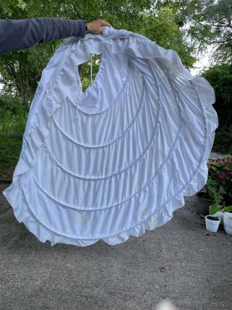 This is a 5-hoop skirt for use under a ballgown, dress-up clothes, re-enactment costume. Perfect for cosplay, re-enactment, Civil War drama, Victorian costume, etc.