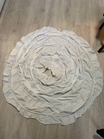 This hoop skirt has some yellowish water stains from being in storage, but they will probably come out with a good wash (please see photos). Used this for a Marie Antoinette costume; now selling it ahead of a move.
