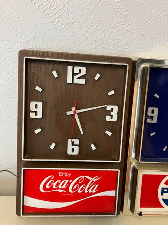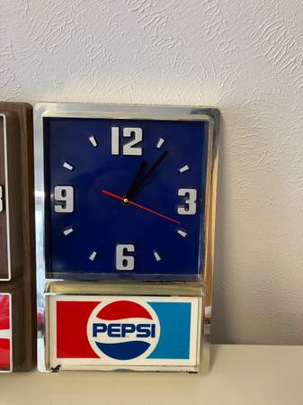 Nice collectibles Pepsi battery. I put new clock mechanism in the Pepsi. Make great display. Size 12x18. Coke clock has been sold.