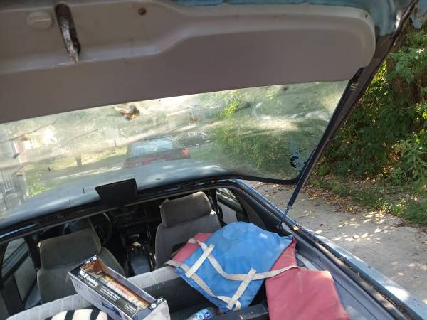 Mostly original motor was replaced like a decade ago before me I replaced the belt tensioner and the ignition and key and the exhaust the tires are useable but need replaced I rebuilt the only cupholder I could track down comes with a free subwoofer the rims are from a gt firebird 16inch alloys ran amazing before my key stopped working the driver floor pan needs patched not much actual rust mostly surface rust blower motor was replaced ok while parked for a few years something ate through a spark plug wire and the wire harness for the windshield wipers any questions just ask price is barely negotiable will need towed doesn't start oh and rear hatch lift pistons have never worked will need security code cleared out there's a new rack and pinion in the trunk no trades cash only