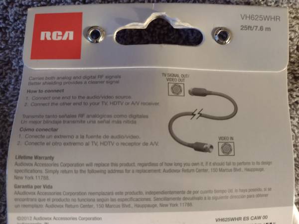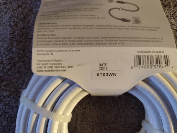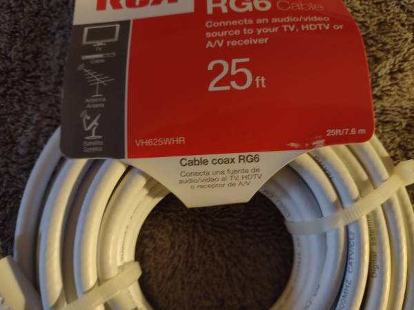 NEW, never used. 25 foot white, RCA Coax RG6 Cable.