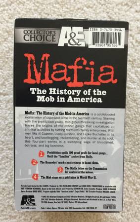 Mafia - The History of the Mob in America. 4 vhs tapes and storage case. A&E Collectors Choice. Downsizing. Non smoking, no pet home. CALL or TEXT ~~~~~~~ 5 7 4 - 5 1 4 - 5 6 1 two ~~~~~~~