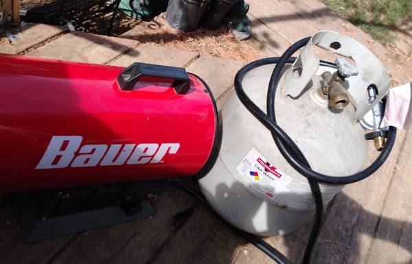 Bauer 30k 60k BTU propane heater with propane tank. Works like new.