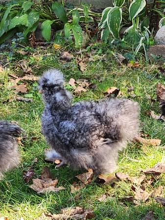 One 6 month old solid white Four 3 month old, one black mottled, 2 cuckoo, 1 solid white possible buff leakage.