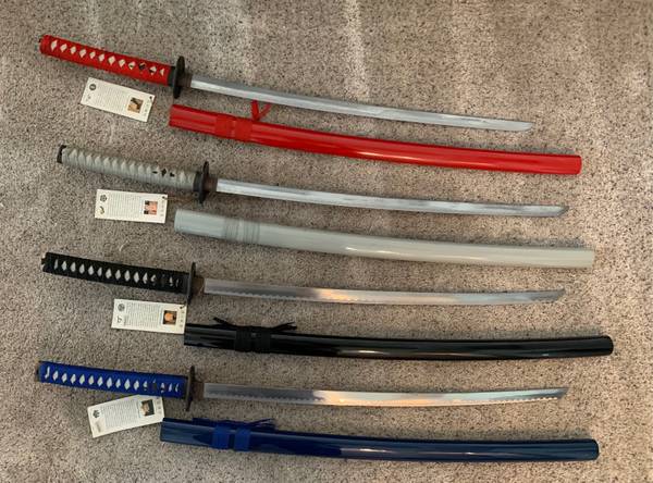 Lot of 6 swords, great for display and/or cosplay. Blades are not sharpened, all new, have been stored for 10 plus years. Text if interested.