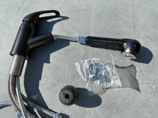 This streamlined, single-lever kitchen faucet features a pull-out sprayer which toggles between stream and spray with the finger-friendly top button. With the optional deck plate, this lead-free, heavy-duty metal faucet will accommodate either single- or triple-hole sink tops. The durable ceramic disc cartridge provides leak-free operation, while the pull-out sprayer gives complete sink access. This CUPC-certified faucet comes with Dura Faucet's limited lifetime warranty.