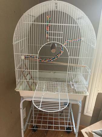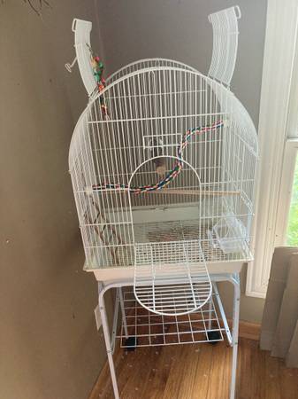 Beautiful bird cage and stand. Wires set apart perfectly for parakeets and finches. Moves easily on caster wheels.