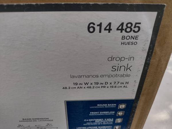 I purchased for a renovation project and we have decided to go in another direction. My planning ahead didn’t pay off. I am outside of the window to return the sink to the store, so my loss can be your gain. (I think I paid between $60 and $65 for the sink).
