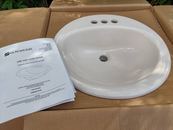 NEW in the Box/Glacier Bay 19-inch Drop-In Round Fireclay Bathroom Sink - Bone Color