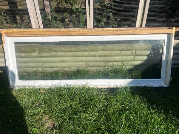 Wood frame. Solid construction. No damage or rot. Exterior 74” x 26” Glass size 67” x 18”