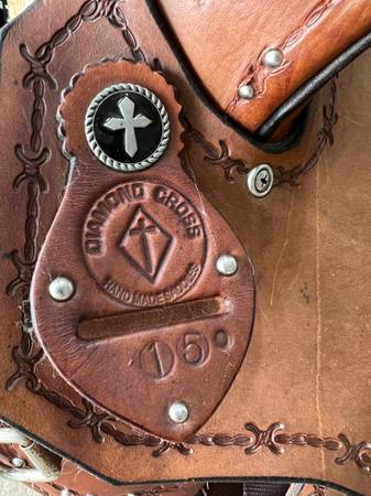 15” Diamond Cross barrel saddle 8” gullet in great condition. Beautifully designed & comfortable. Cleaned & oiled Pick up only