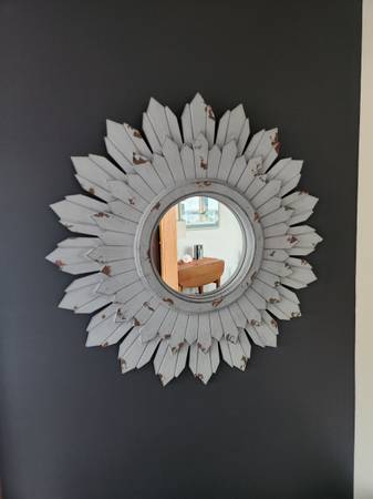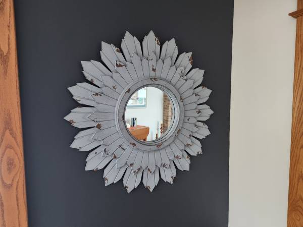 Decorative mirror. The mirror is 31". The glass is 11". No longer needed. Price is firm. NO Shipping. EMAIL A PHONE NUMBER AND A GOOD TIME TO CALL YOU BACK. If this ad is still up, it is still for...