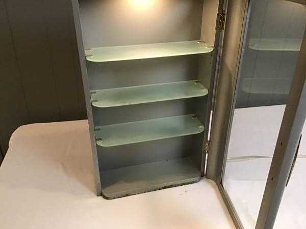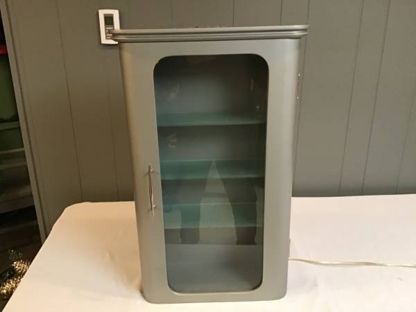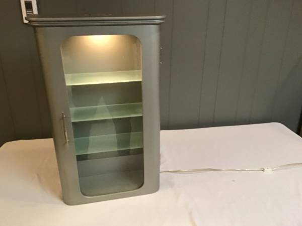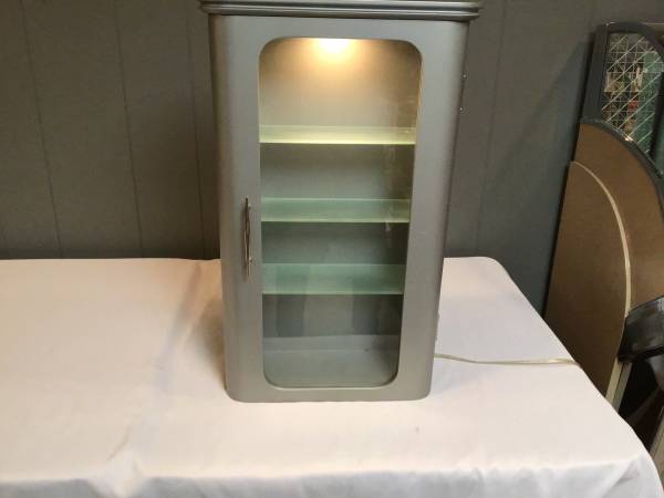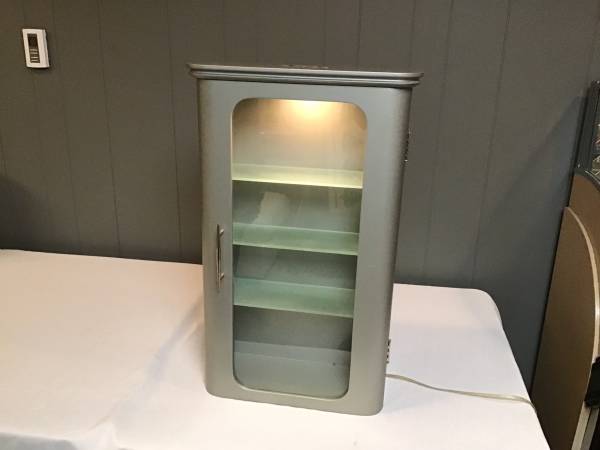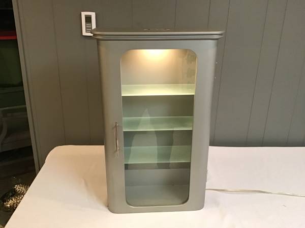 Brand new display cabinet. 28 In high 17 wide. 6 deep. Shelves measured 5in inside. Lighted with switch on cord.