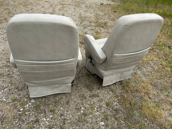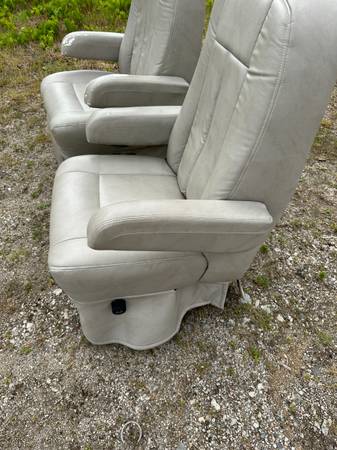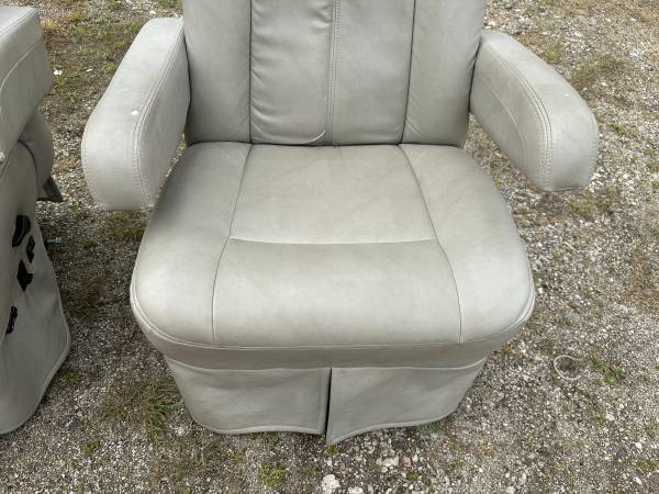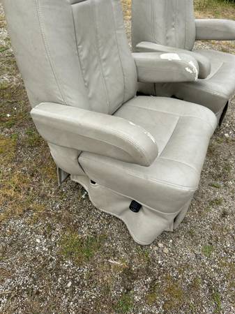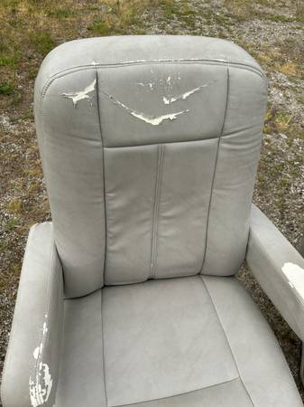 Condition: Seats are used and have wear (pictured). Very comfortable with lot of life left. Grey Ultraleather material. Has various wear on seat, headrest and arms as pictured. Power options. Heat. Adjustable arms. Manual recline. Swivel base. Map Pocket. Lumbar. Passenger Power footrest. Material is worn (see pictures) and has various imperfections. Comes as pictured. As is. All items may need misc. nuts, bolts, screws, parts and possibly assembly.