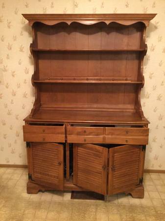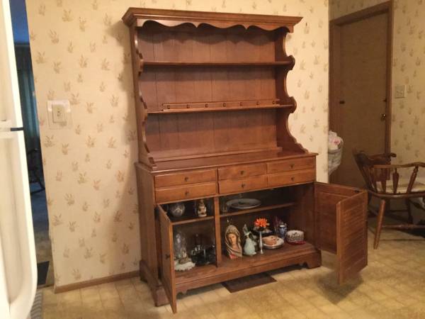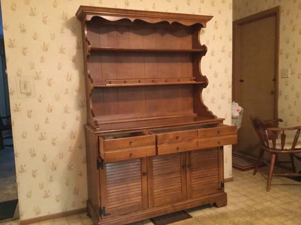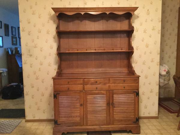 This hutch is a very old, beautiful piece and in very good condition. Loved by same family for 40 years. From a non-smoking home. Hutch comes apart but it is VERY HEAVY;