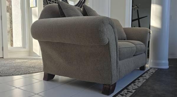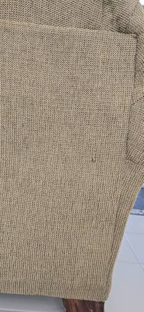 There is 1 small hole on the backside shown in the photo. There is also a spring coming through a hole in the fabric under 1 of the seat cushions- it is a rounded edge/not sharp. Neither affects functionality or esthetics at all.