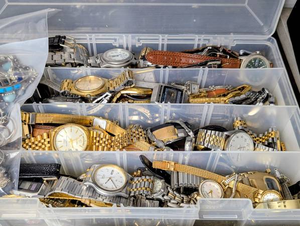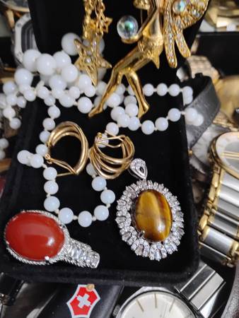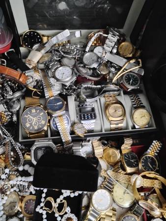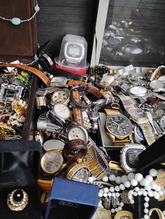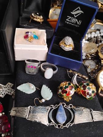 Tremendous collection of vintage, victorian jewelry & watches. This collection is for the person that has the time to set down for a couple of months and go through it all. We'll be adding more to it as we uncover other packages. Lots of sterling, gold filled. 10kt and 14kt will be added to another post after all the watches and costume jewelry has been sold. Thanks