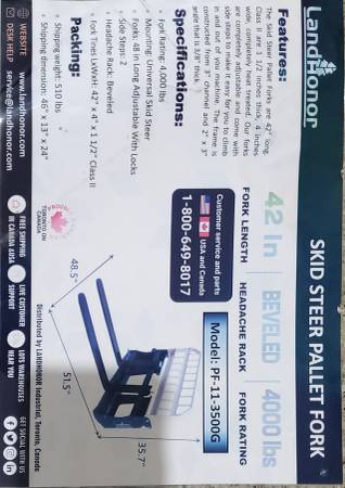 Landhonor pallet forks…42” long…4,000lb capacity…removable guard
