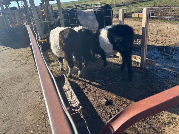 Three calves (two steers and a heifer) weighing between 300-400 pounds for sale out of a belted Galloway Bull. Calves were born in May. Calves are ready to be weaned eating hay and grain. Asking...