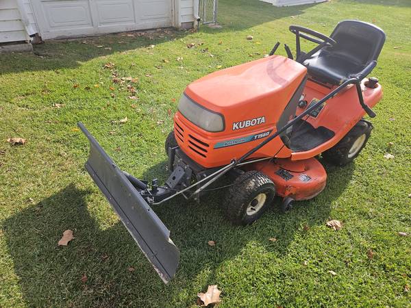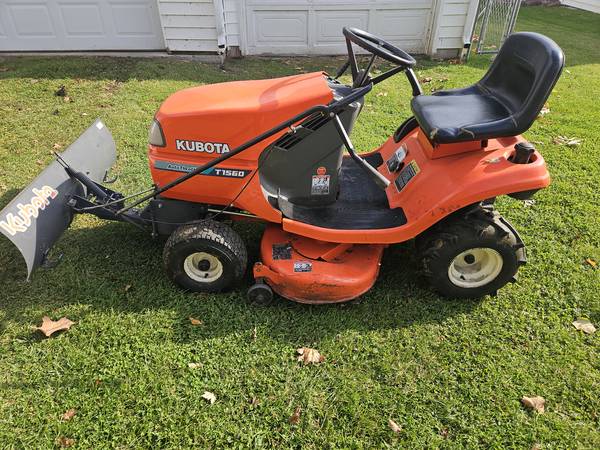 Kubota T1560 14 engine . 38 in mower and 42 in plow with chain. Workshop manual. Brand new front tires and like new rears tires.Some rips on seat. $700.00 FIRM. CASH. Ready to mower or push snow ....