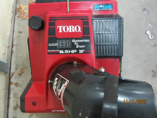 Toro CCR 3650 walk behind snow thrower. Large 6.5 HP engine with electric start. Guaranteed To Start system. Power Curve auger. 20 inch clearing path. Fresh tune-up. CALL ONLY PLEASE NO TEXT OR EMAIL