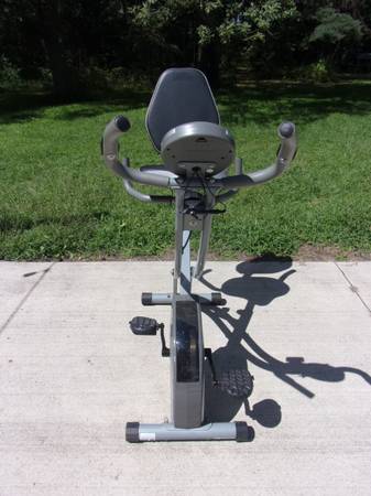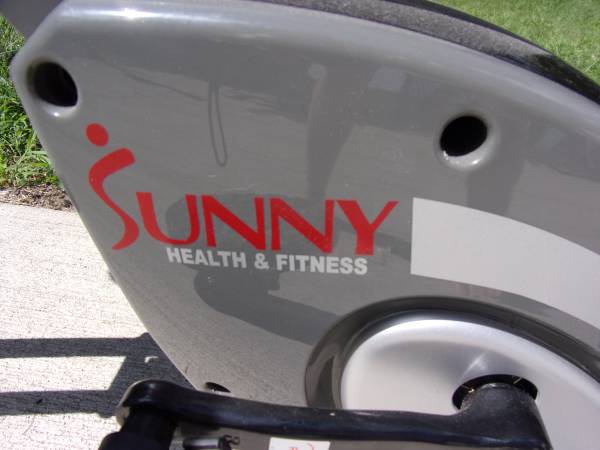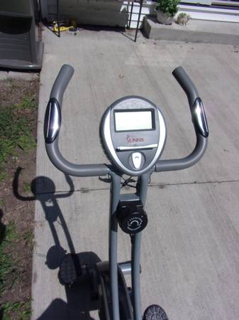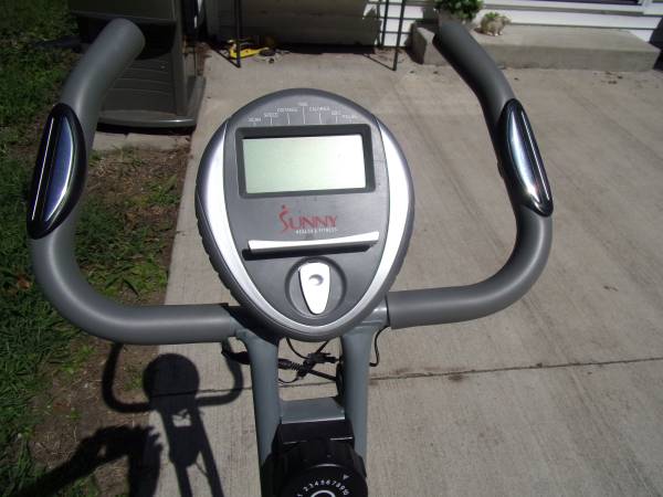 Sunny Health and Fitness stationary exercise bike. Extra thick seat and backrest. Is foldable for storage. In very good working condition!