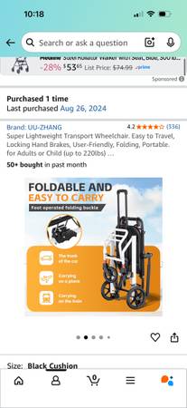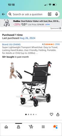 Super Lightweight Transport Wheelchair. Easy to Travel, User-Friendly, Folding, Portable. for Adults or Child (up to 220lbs). Rarely used.
