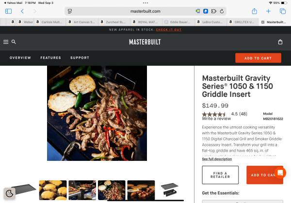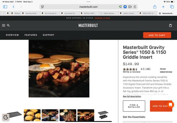 Features of the Masterbuilt Gravity Series® 1050 & 1150 Griddle Insert