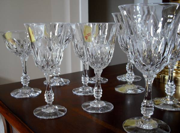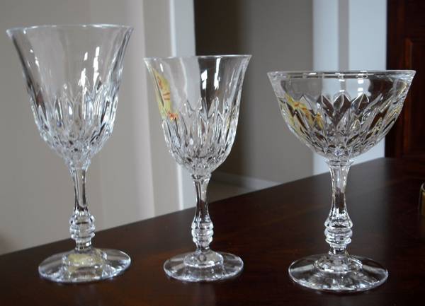4 water goblets, 4 wine glasses, and 2 sherbet / champagne.