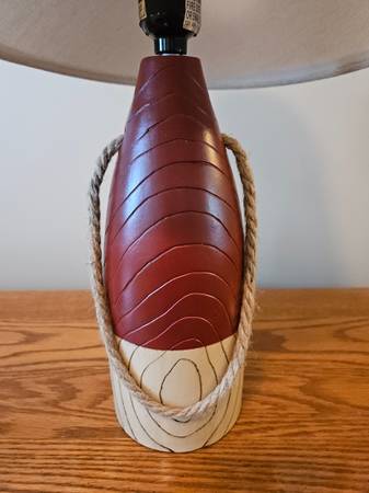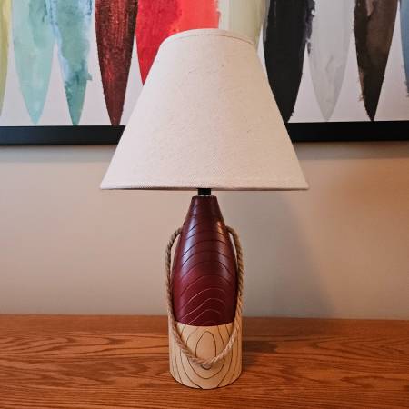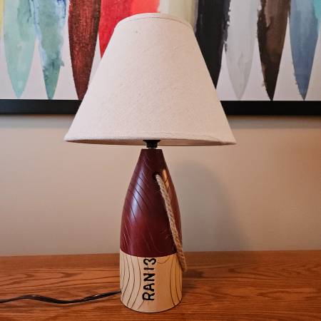 Nautical themed table lamp shaped like a buoy. Made of resin. Push through on/off switch on lamp socket. Uses a maximum 40-watt bulb (included). Like brand new condition. From a smoke-free...