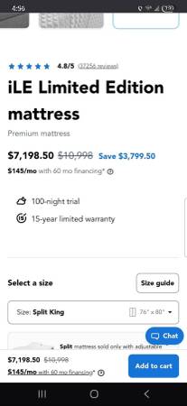 Sleep Number Split king iLE smart bed with adjustable head and foot. Has zero gravity setting and snoring setting. Would include sheets and comfoter and head board. You can download app to your phone and control with your phone as an option to the remote. Purchased in March of 2024. Excellent condition. I am just downsizing. Would need two strong men and a truck to pick up. Cashier's check only or cash. First come first serve.