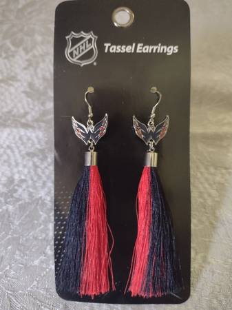 Show your team spirit! These new, never worn Washington Capitals tassel earrings are ready to find a new home. Gifted to me by a friend who wanted to share their love of hockey. I’ve simply never had the right occasion to wear them.