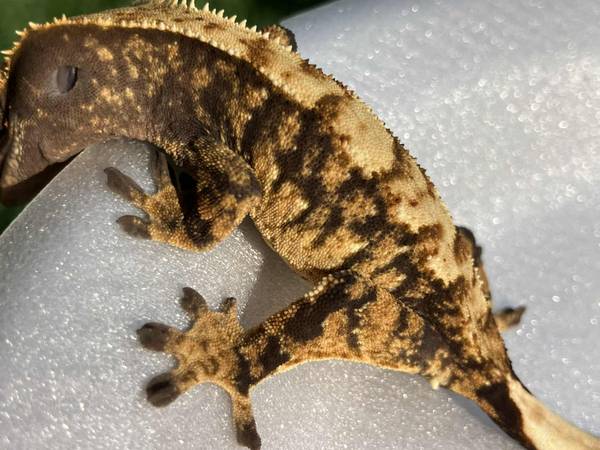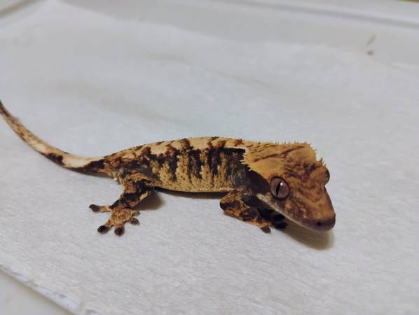 Hello! I have a small selection of crested geckos available, including an adult proven breeder male red harlequin, a adult proven breeder orange phantom, a vibrant juvenile extreme harlequin, and two hatchlings. One POS flame harlequin and one phantom with dal spots. Please message or email for more details or any questions you may have. Thank you!