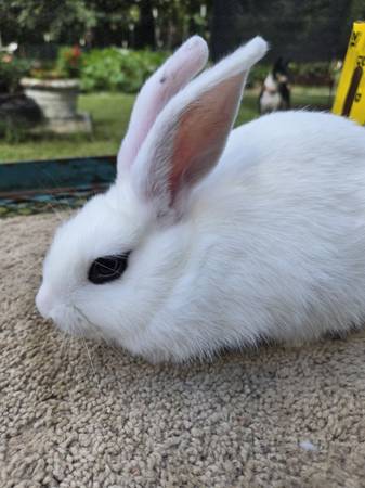 I have 5 pedigreed Blanc de hotots. 3 month old. 2 of them are not show quality but would make great breeding stock. Doe and buck. Out of showable stock, buck is imported from Germany. Doe is a great mother. Ear pic is before body pics.
