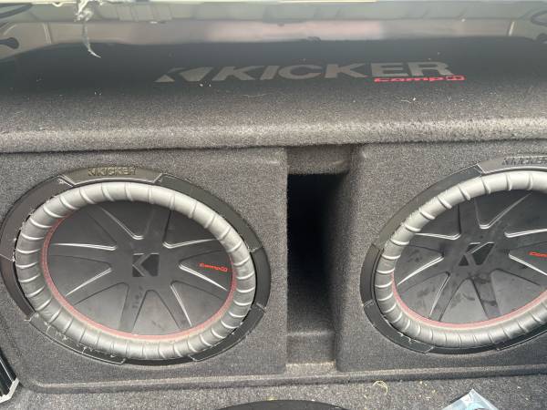 2 12 Comp R Kickers in the box .... i've had these in my trunk for a year now never got hooked up cause i never had the time due to my job being on the road .. i heard them hooked up before i bought them so they definitely work no flaws too the speakers at all they are on the newer side the 4000 watt mean machine also very good condition with a few scratches on the paint .