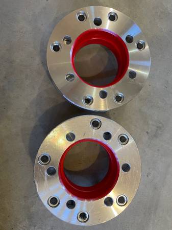 adapters”. This means you can bolt these adapters to your existing single 6 lug bolt hubs with a 5.5” bolt circle , to ACCEPT an 8 lug bolt single or DUAL wheel, with a 6.5” bolt circle. See pictures. I used them to convert a single to a rear dual wheel set up on the rear of a Chevy Silverado 1500. ~ Chrome flat face dual wheel lug nuts also available…These adapters can be used for other trucks also. Thanks for your interest