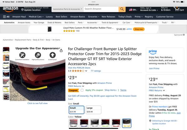 [COMPATIBILITY] PDKLIN for challenger front lip splitter compatible with 2015-2023 Dodge Challenger GT RT SRT (NOT for SXT and Can't fit Widebody) Not for Hellcat Version