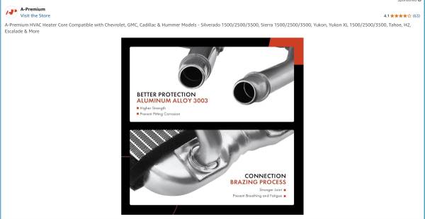 [Reference Number]: 52473322, 89018297, HT4204C, 90050, 93050---Please enter your vehicle information into the "amazonconfirmedfit" module and check the special notes before purchasing our havc heater core.