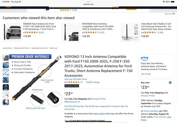 For Your Ford Trucks: This aftermarket antenna is compatible with Ford F150 (2009-2025), Ford F250 and Ford F350 Super Duty (2017-2025), including Ford Raptor Trucks and Ford Bronco (2021-2024) models.