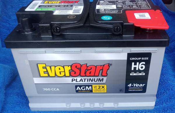 Everstart platinum sz H6/ sz 48 equivalent AGM battery is brand new never used. Offering it at more than $90 off of a retail price exceeding $190 after tax