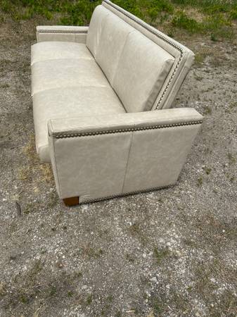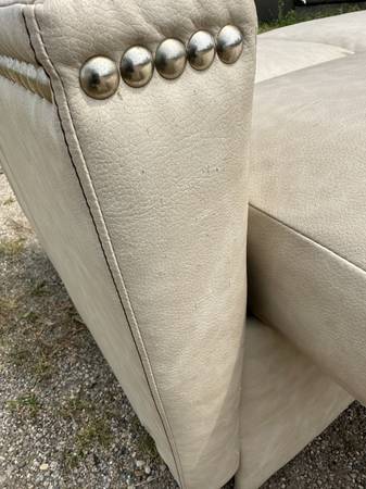 Condition: Item is used in great condition. Cream / Tan marble Ultraleather with dark stitching. Jack knife's into a bed. Has claw marks on various spots as pictured. Comes as pictured. May need some nuts, screws or bolts and assembly to be complete.