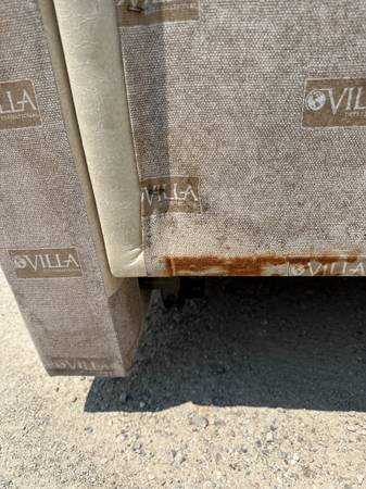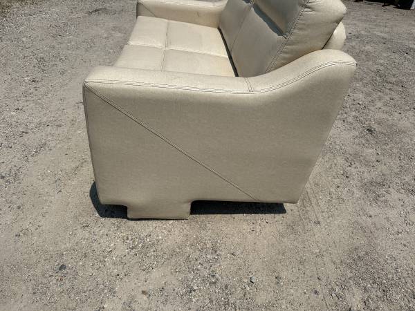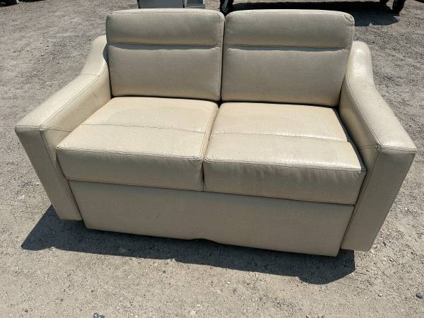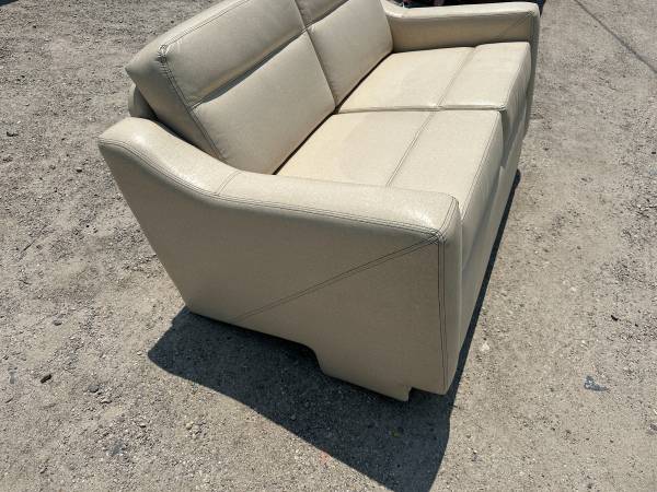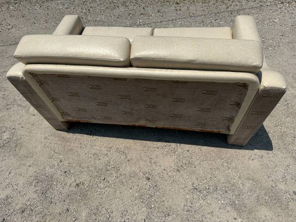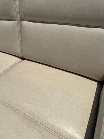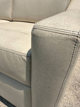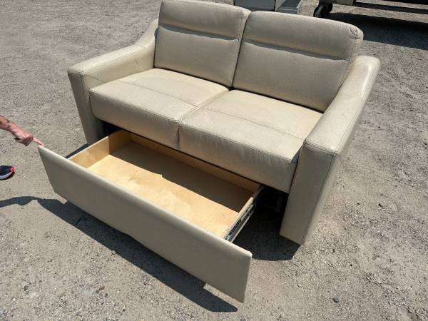 Condition: Item is used with pictured blemishes. This in a standard sofa, does not turn into a bed, with pull out drawer. Pompeii Ultraleather with dark stitching. Has wear and cracking as pictured.