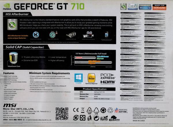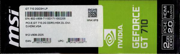 Chipset: NVIDIA Geforce GT 710 2GB DDR3, Passive 0dB efficient cooling, huge heat sink radiator covers the area of GPU and memory. Providing a low noise & temperature environment for desktop applications and multimedia.